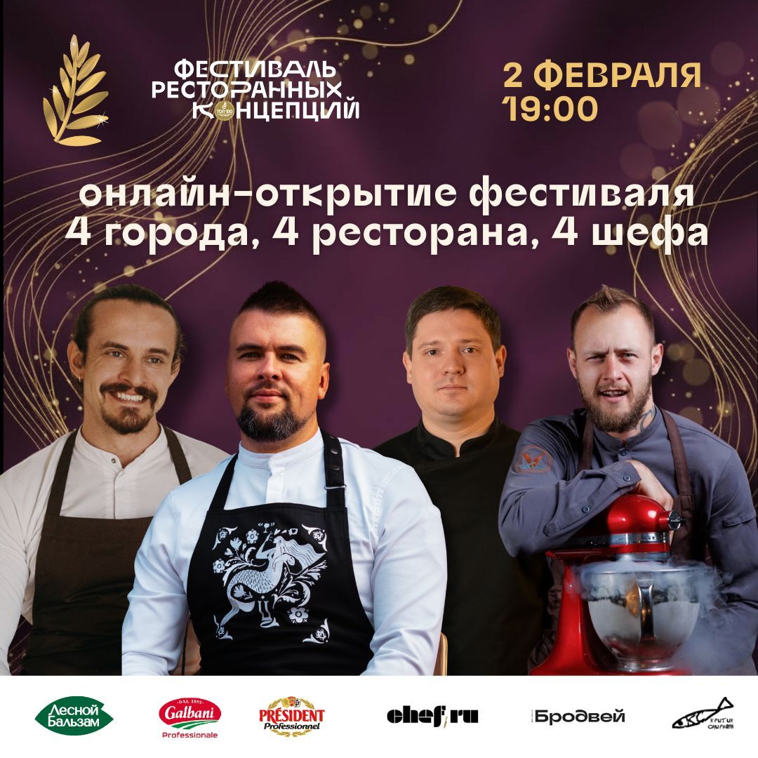 | НОВОЕ И ЛУЧШЕЕ 2 ФЕВРАЛЯ 2026 | | | | Начинаем новый сезон с фестиваля лучших ресторанных концепций! Мы хотим максимально близко познакомить вас с проектами из Топ-100 открытий 2025 года. Кто-то из них станет финалистом премии в этом году, а их шефы и бартендеры, возможно, могут взять награду «Лучшие в индустрии». Следить за новичками всегда интересно и полезно, чтобы быть в курсе трендов современного ресторанного бизнеса. | | | | | Впервые в истории! Смотрите онлайн-марафон и выиграйте посещение ресторана в вашем городе! | | Сегодня 2 февраля в 19:00 одновременно в 4 городах: Москве (Pomme Verte), Нижнем Новгороде («Цитадель»), Казани («Ак Чынаяк») и Калининграде («История в тарелке») состоится открытие Фестиваля ресторанных концепций!