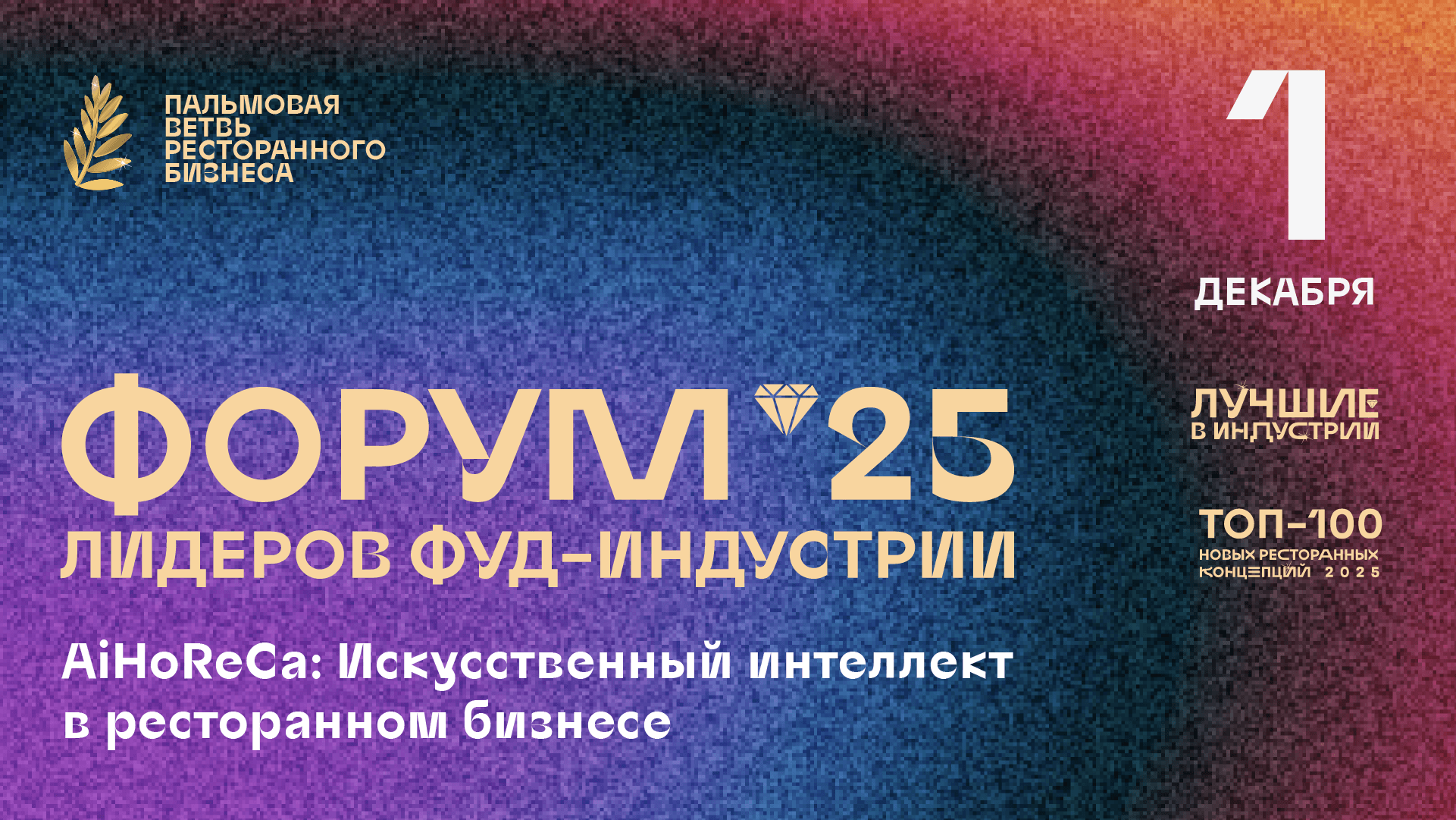 | Новости премии и форума. 19 ноября | | | | Подробная программа Форума лидеров фуд-индустрии 1 декабря | | | | AiHoReCa. Технологии и искусственный интеллект в ресторанном бизнесе: практические кейсы, инструменты и решения, которые работают уже сегодня | | | | | 11:00 — ИИ в штате: как использовать ИИ в ресторане уже сегодня в роли маркетолога, аналитика, фотографа и дизайнера | - ИИ как часть команды, а не инструмент по настроению